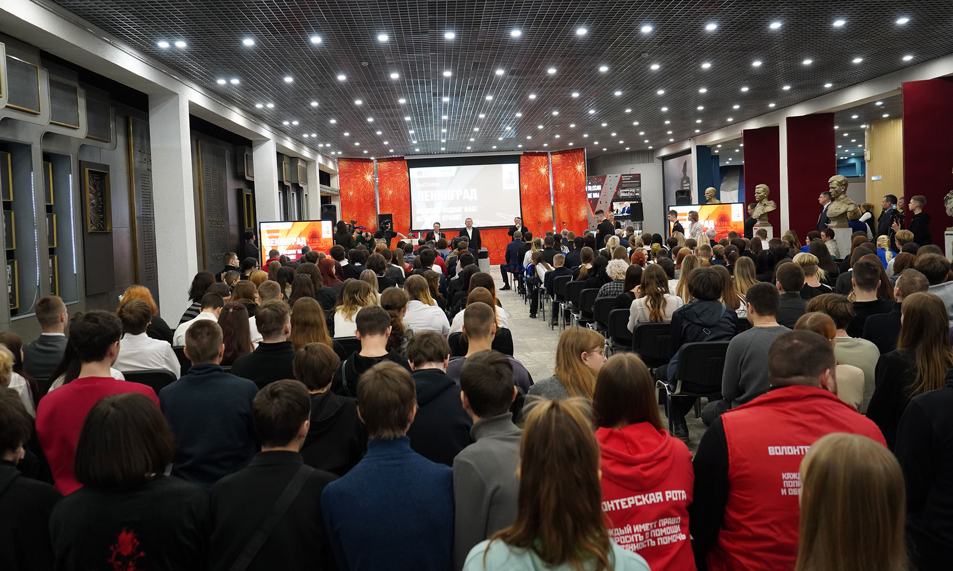 В честь мужества защитников и жителей великого города мы открыли памятную выставку. Она стала началом мероприятий года, объявленного Президентом России, нашим национальным лидером, Владимиром Владимировичем Путиным, Годом защитника Отечества и 80-летия Победы в Великой Отечественной войне.