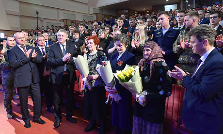 В числе гостей — матери и члены семей бойцов, погибших при выполнении воинского долга, ветераны, военнослужащие, курсанты и юнармейцы.