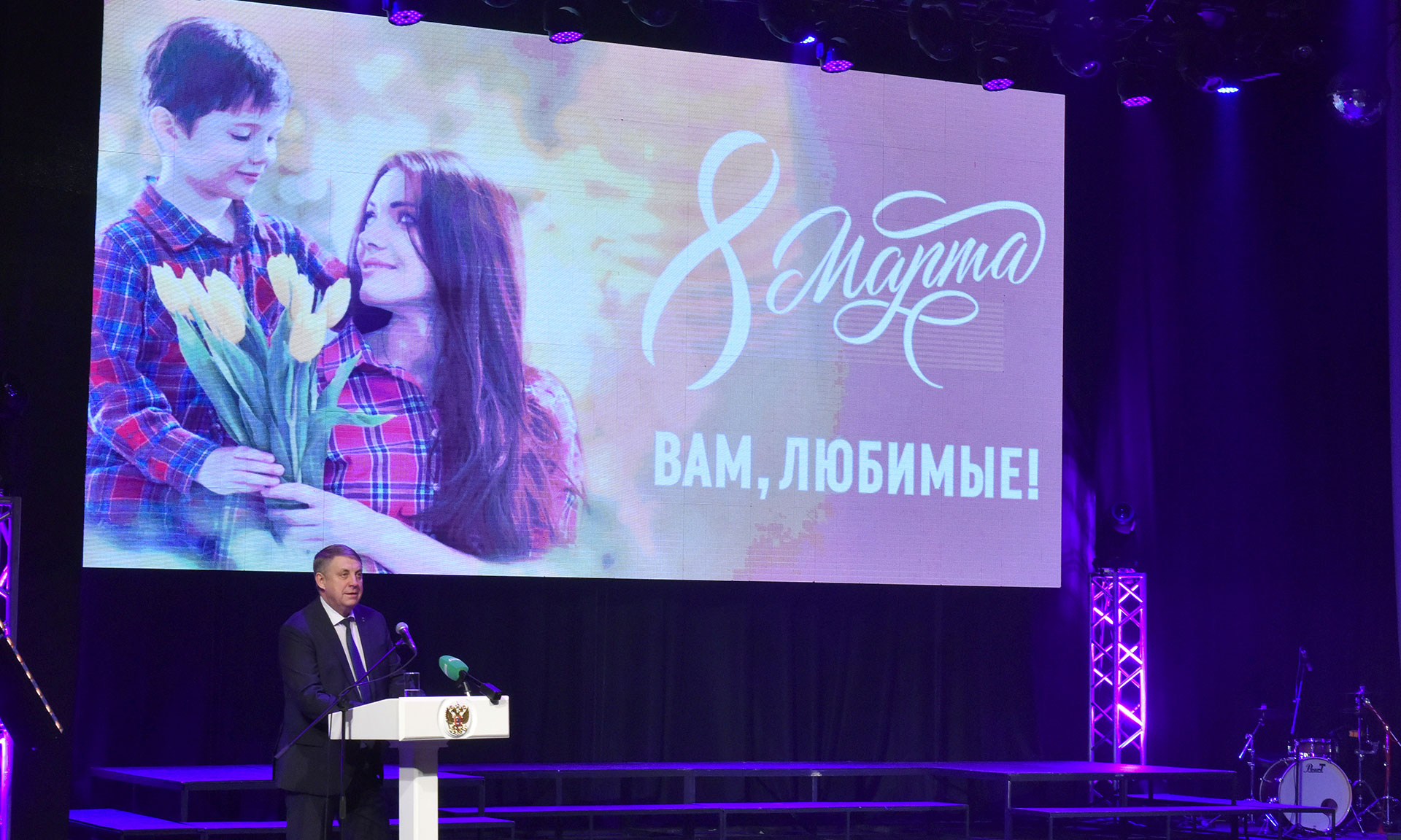 Праздничный концерт в преддверии Международного женского дня уже стал доброй традицией и ярким подарком всем женщинам Брянской области. Среди зрительниц — матери, жены и вдовы защитников Отечества, а также женщины, которые своим трудолюбием вносят существенный вклад в развитие всех сфер жизни Брянской области.