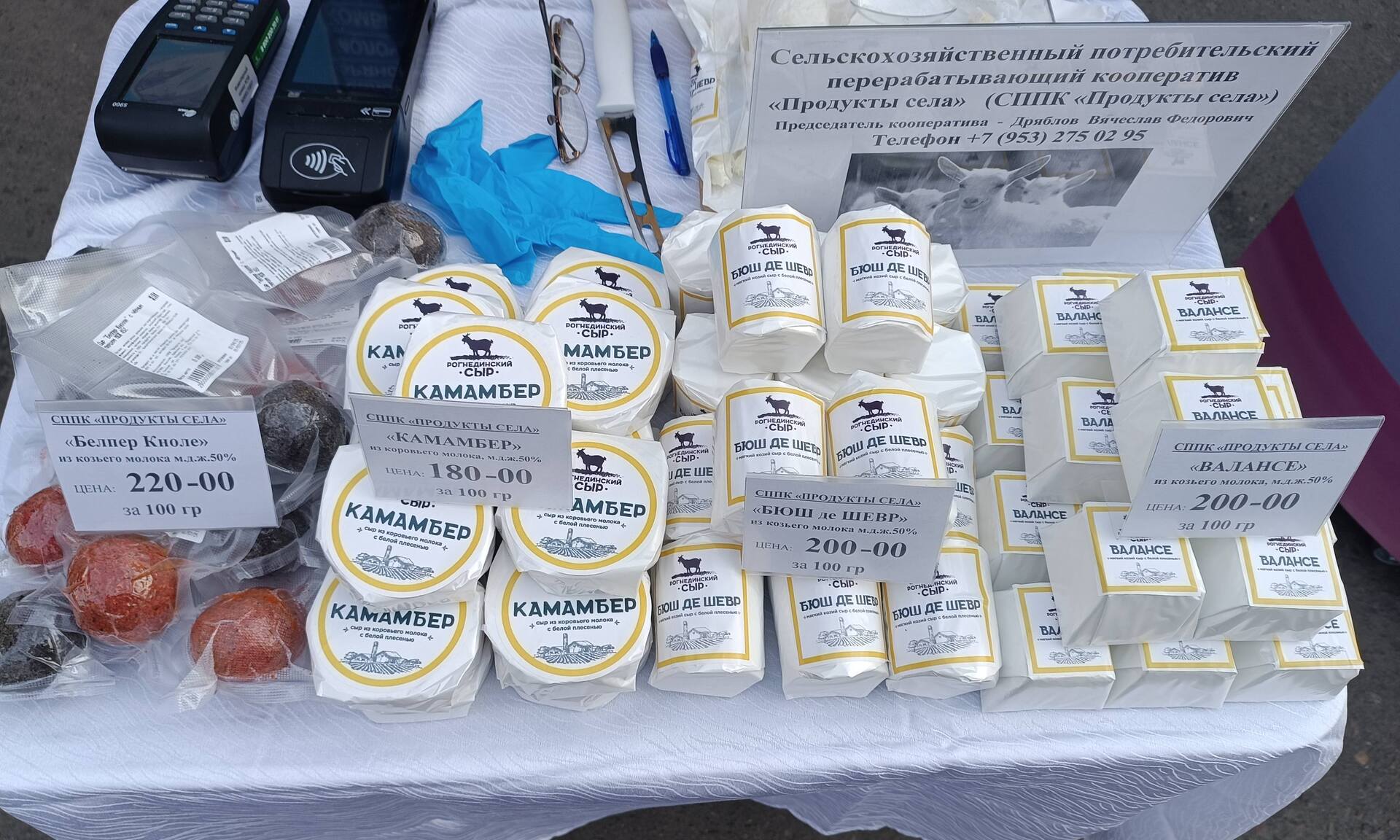 Предлагается большой выбор продукции местных сельхозтоваропроизводителей: картофель, свекла, морковь, капуста, лук репчатый, молочная продукция (молоко, творог, сметана, йогурты, сыр козий), хлебобулочные изделия, яблоки, мед, саженцы, цветы.