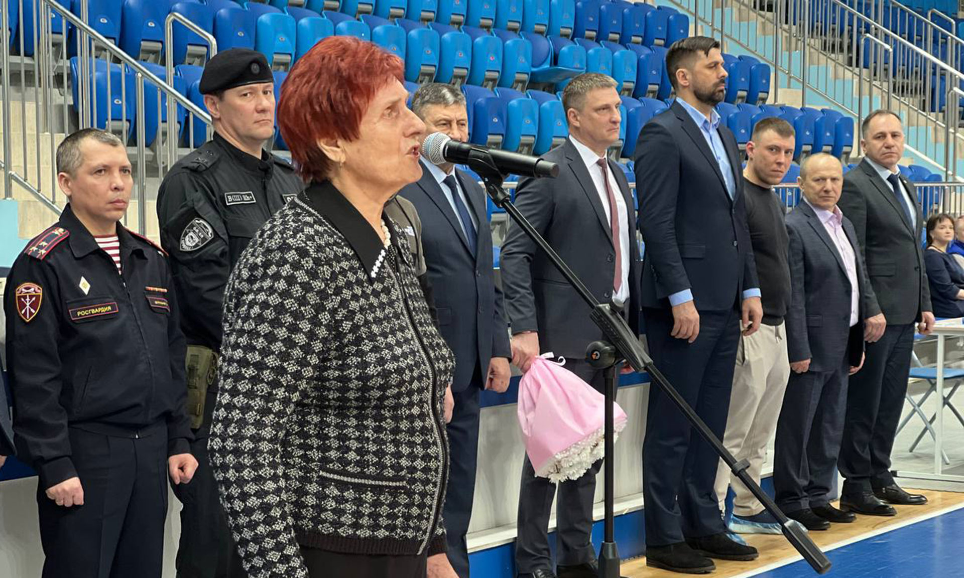 Участников соревнований поздравила мать Героя России Олега Ермакова Лидия Филипповна Ермакова, она пожелала спортсменам честной борьбы.