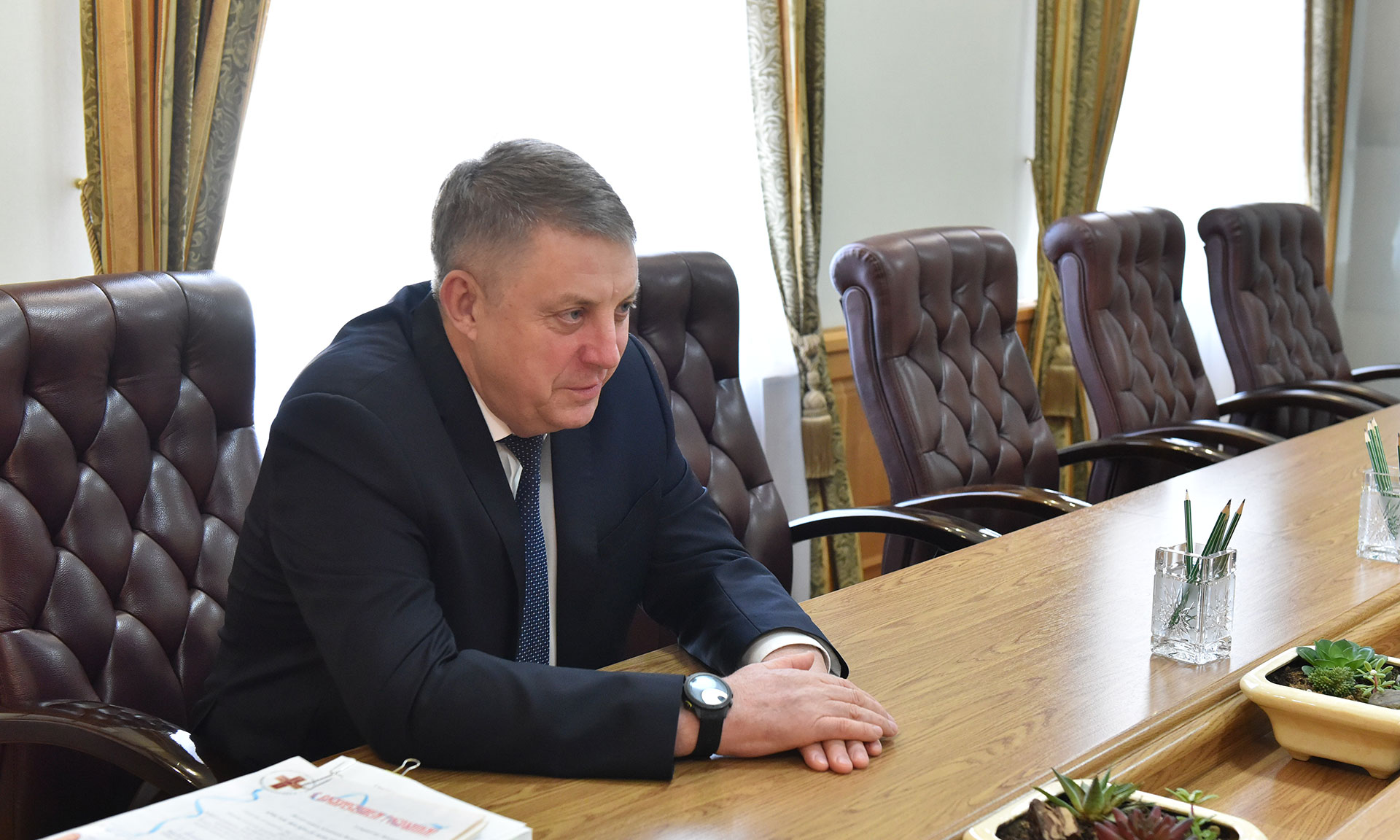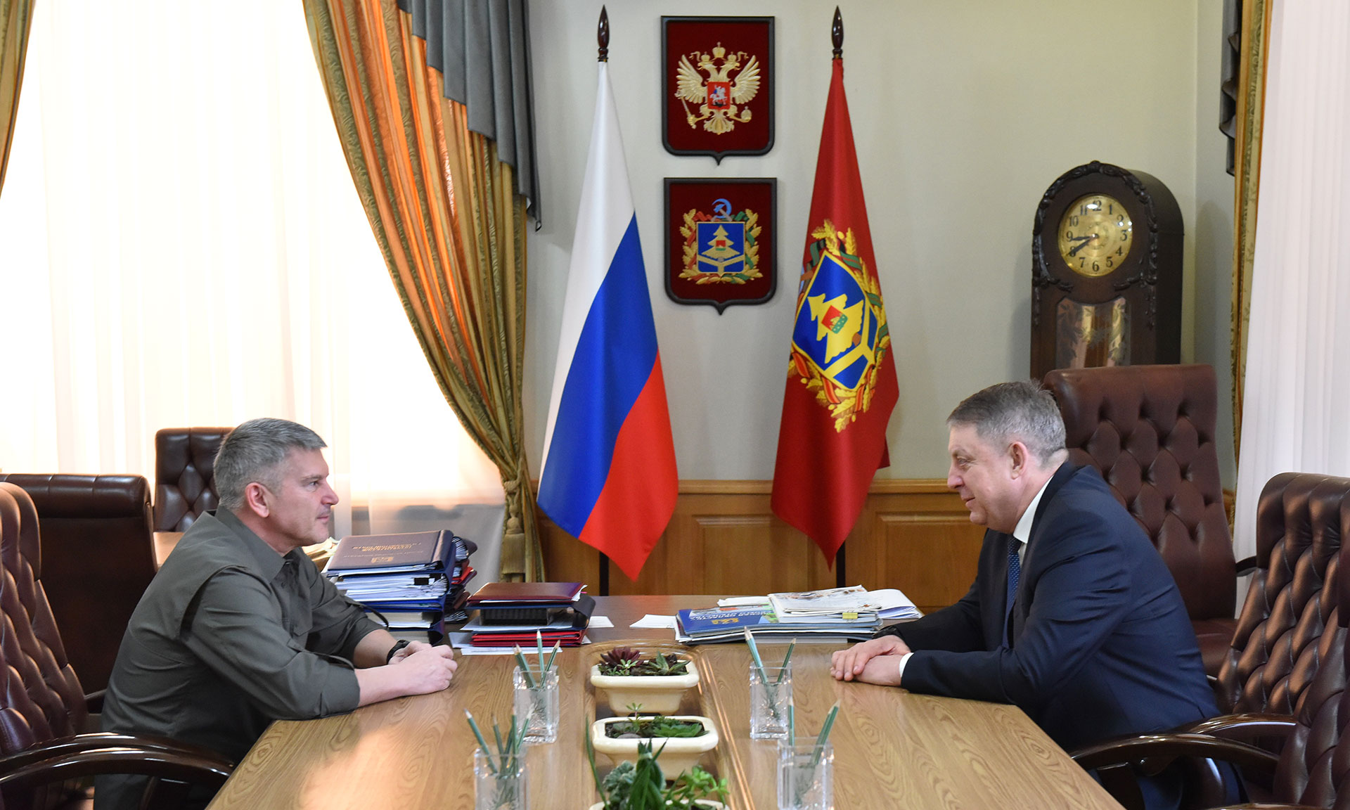 18 апреля состоялась рабочая встреча Губернатора Александра Богомаза с руководителем Департамента строительства Министерства обороны РФ Игорем Маковским.