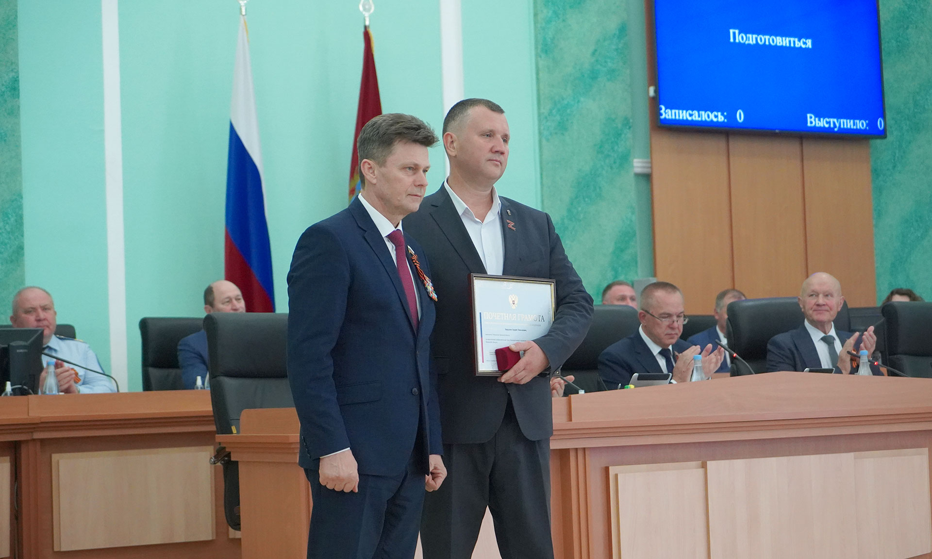 Перед обсуждением повестки заседания выступил сенатор Российской Федерации Василий Попадайло. Он вручил заместителю Губернатора Андрею Бардукову Почетную грамоту Совета Федерации Федерального Собрания Российской Федерации «За многолетний добросовестный труд, большой вклад развитие системы здравоохранения Брянской области».