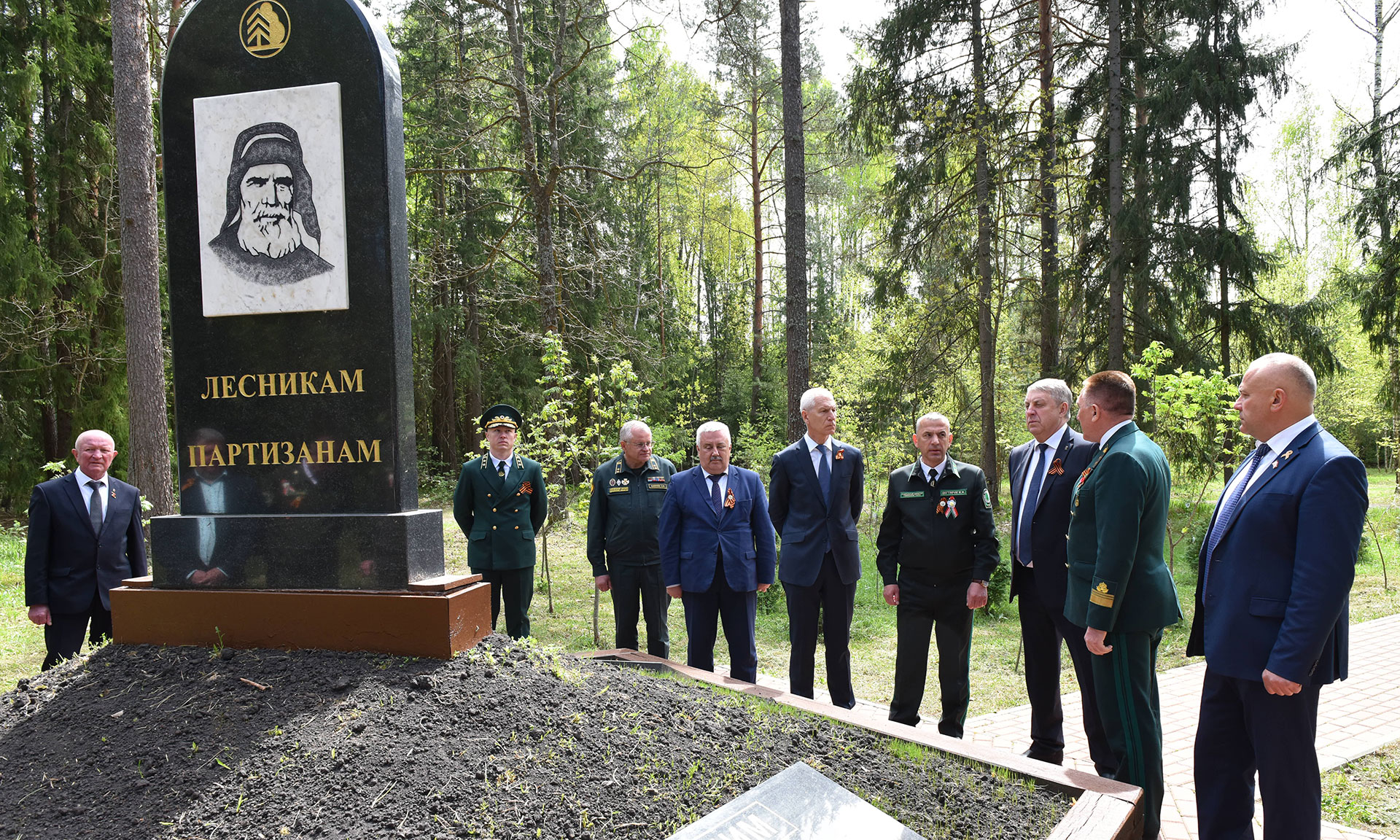 В преддверии празднования 80-й годовщины Победы в Великой Отечественной войне почетные гости открыли памятный знак «Лесникам-партизанам России и Беларуси, принимавшим участие в партизанском движении».