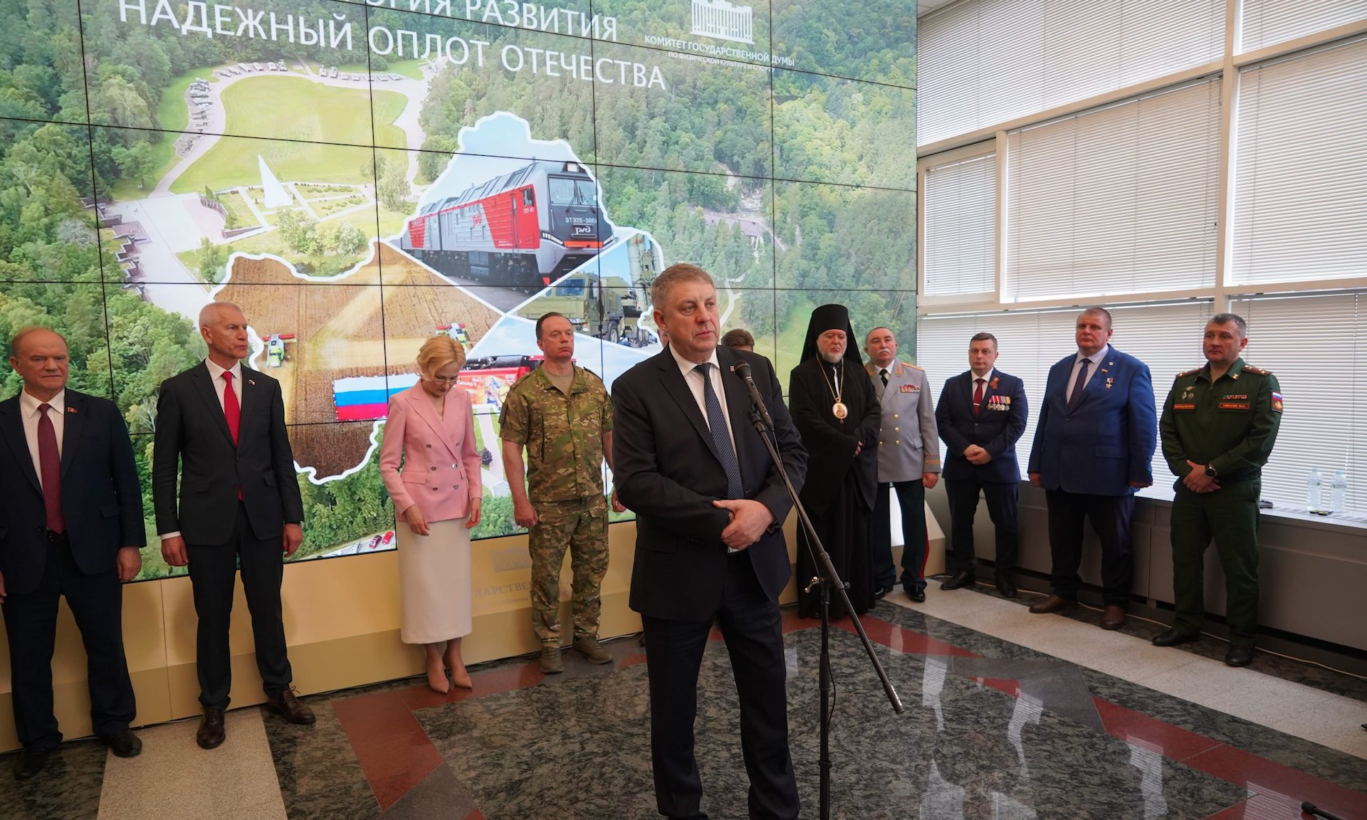 — Брянская область — территория развития, надежный оплот Отечества! Признателен Председателю Государственной Думы Вячеславу Викторовичу Володину, нашим депутатам, инициатору выставки — Олегу Васильевичу Матыцину за то, что нас поддержали.