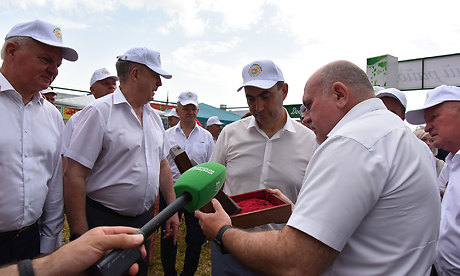 Сегодня с нами наши братья белорусы. Мы постоянно учились у них, а сегодня уже делимся своим опытом, оказываем поддержку по всем направлениям и продолжаем учиться друг у друга. На наших полях растет пшеница, которая выведена в Беларуси.