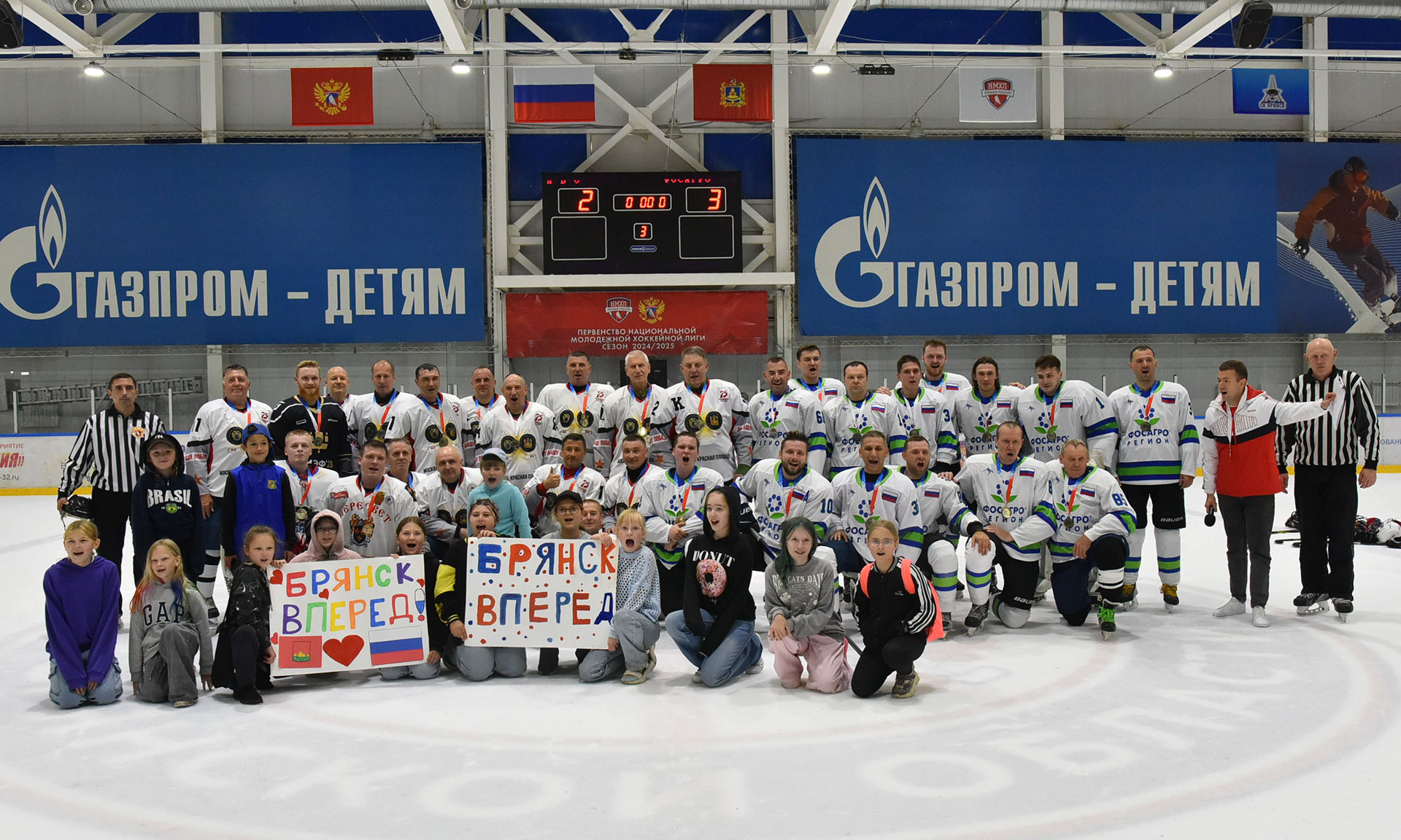 На ледовой арене в Брянске состоялся товарищеский хоккейный матч команды Брянской области и команды «ФосАгро-Регион» Министерства сельского хозяйства Российской Федерации.