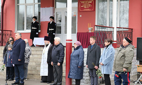 Почтив память погибшего минутой молчания, присутствующие возложили цветы к мемориальной доске бойца.