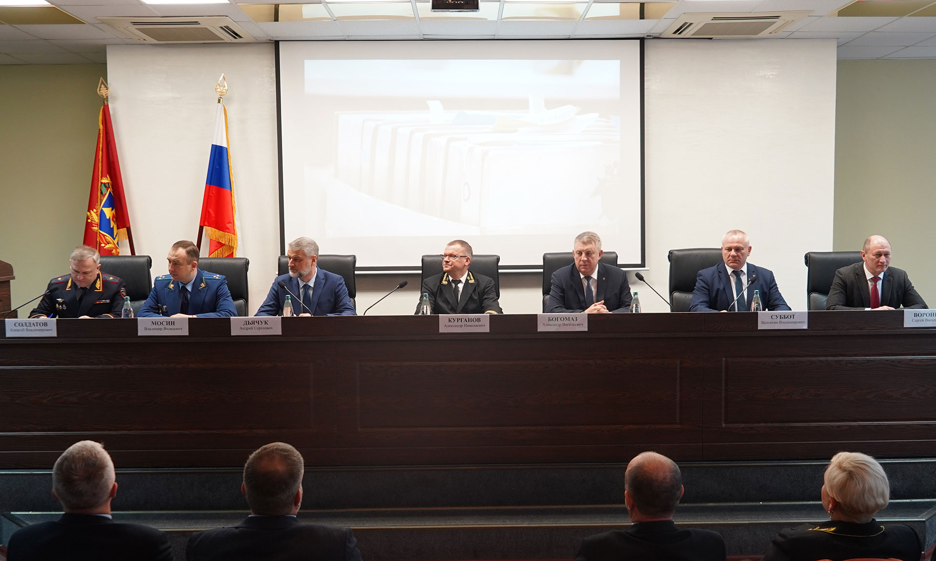 В совещании приняли участие Губернатор Александр Богомаз, председатель Брянского областного суда Александр Курганов, председатель Брянской областной Думы Валентин Суббот, главный федеральный инспектор по Брянской области Андрей Дьячук, прокурор Брянской области Владимир Мосин, начальник управления ФСБ России по Брянской области Сергей Воронин, начальник УМВД России по Брянской области Алексей Солдатов, судьи Брянского областного суда, председатели и судьи судов общей юрисдикции Брянской области, мировые судьи.