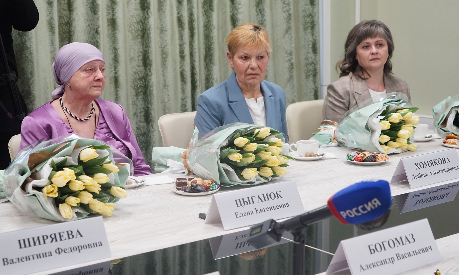 В числе участниц встречи мама погибшего Героя России Олега Синицы — Елена Евгеньевна Цыганок; мать и вдова Героя России Эдуарда Лукошюса — Валентина Федоровна Ширяева и Галина Викторовна Лукошюс; мать участника специальной военной операции Игоря Хомякова, посмертно награжденного орденом Мужества, — Любовь Александровна Хомякова; Аксиния Лукьяновна Строгонова, два сына которой, Олег Поздняков и Дмитрий Строгонов, посмертно награждены орденами Мужества; Светлана Николаевна Глушак — мама Сергея Глушака, награжденного медалью за «За воинскую доблесть» II степени, медалью «За отличие в воинской службе» III степени, орденом Мужества посмертно; Лилия Петровна Гуренко — мама Владимира Гуренко, награжденного орденом Мужества, медалью Ордена «За заслуги перед Отечеством» II степени с мечами, медалью Жукова, медалью «За укрепление боевого содружества», медалью «Участник специальной военной операции»; Ирина Александровна Черкасова — мама Вадима Черкасова, посмертно награжденного медалью «За отличие в охране государственной границы»; Лидия Викторовна Юрченко — мама Виктора Юрченко, награжденного орденом Мужества посмертно.